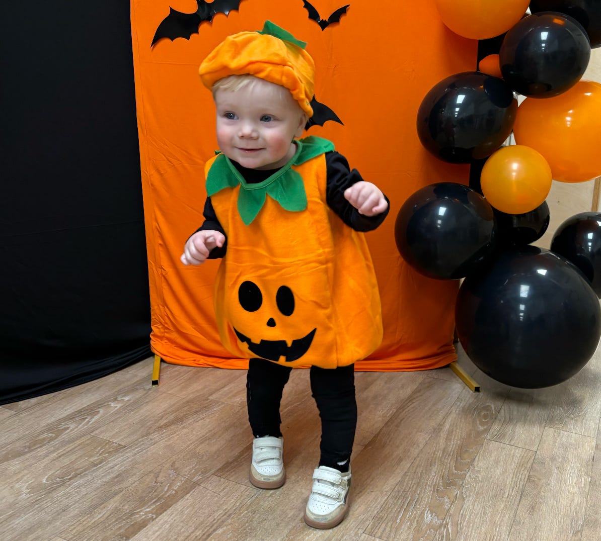 “Can a one-year-old who can barely walk really pull off a pumpkin costume? And with a matching hat? I don’t know!”
